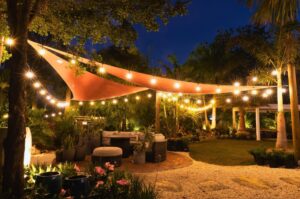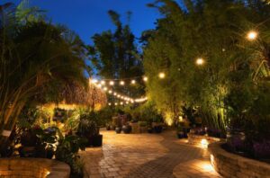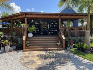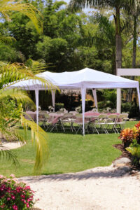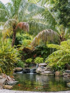 A serene setting with a koi pond, lush greenery, and vibrant blooms. Enjoy multiple seating vignettes, a shaded pergola, and the soothing sound of a nearby stream and waterfall. Perfect for intimate gatherings and relaxed celebrations.